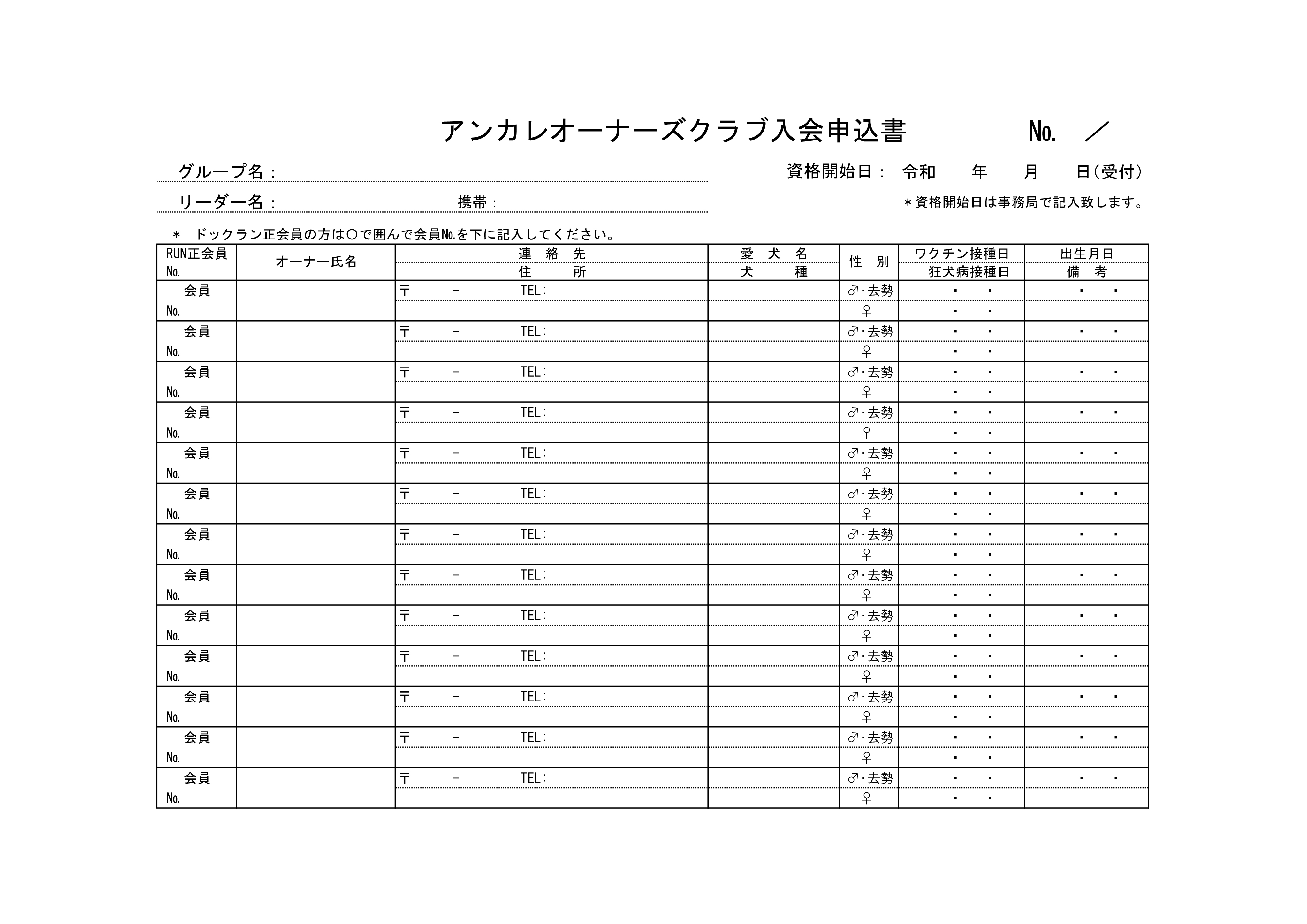 アンカレオーナーズクラブ申込書(PDF)はこちらかダウンロードできます。